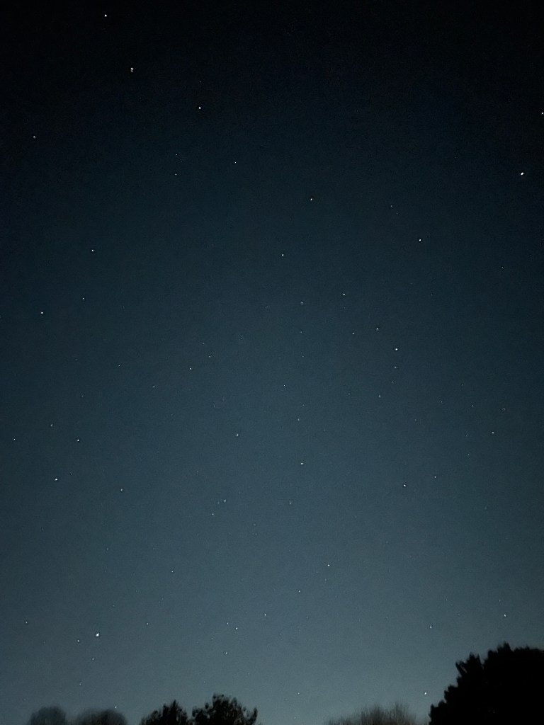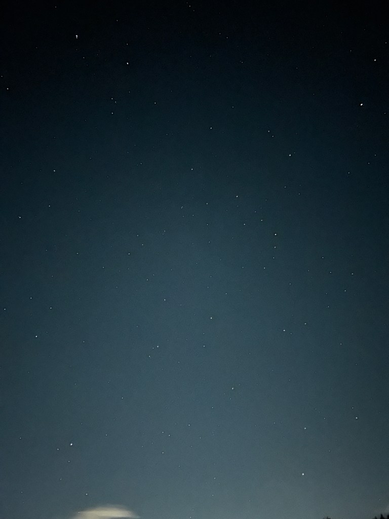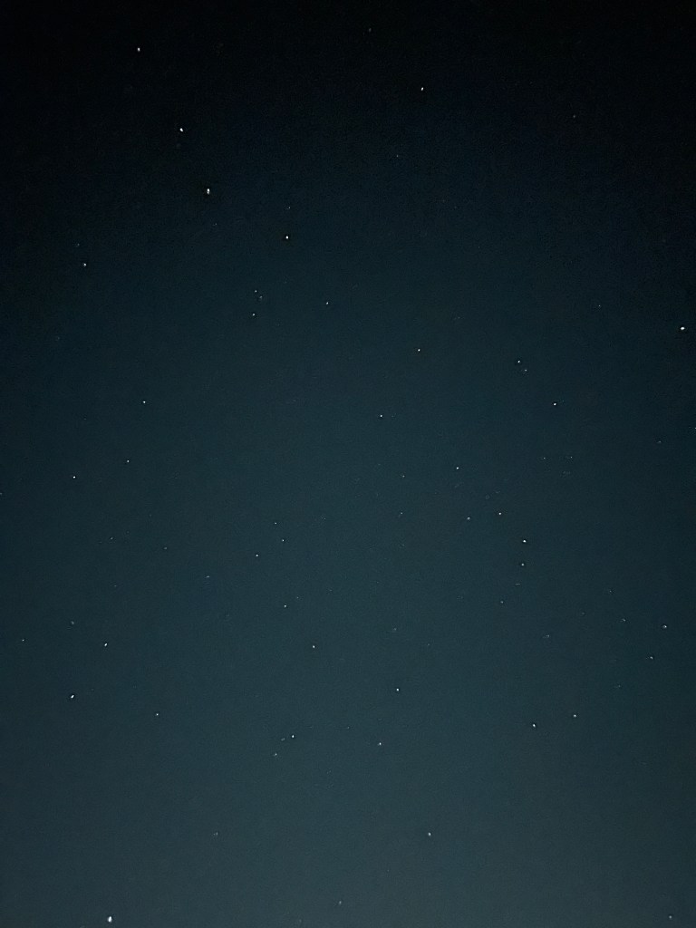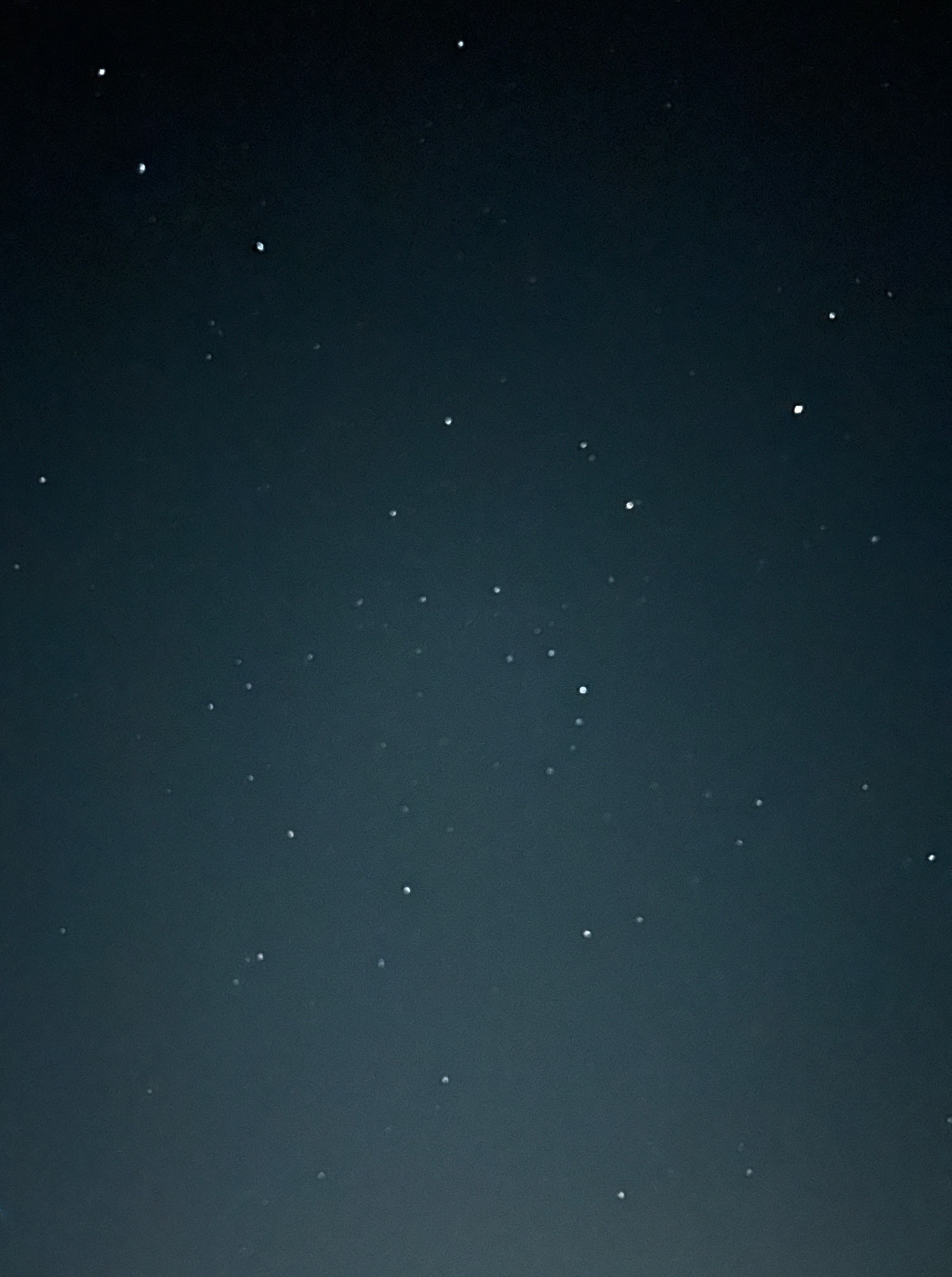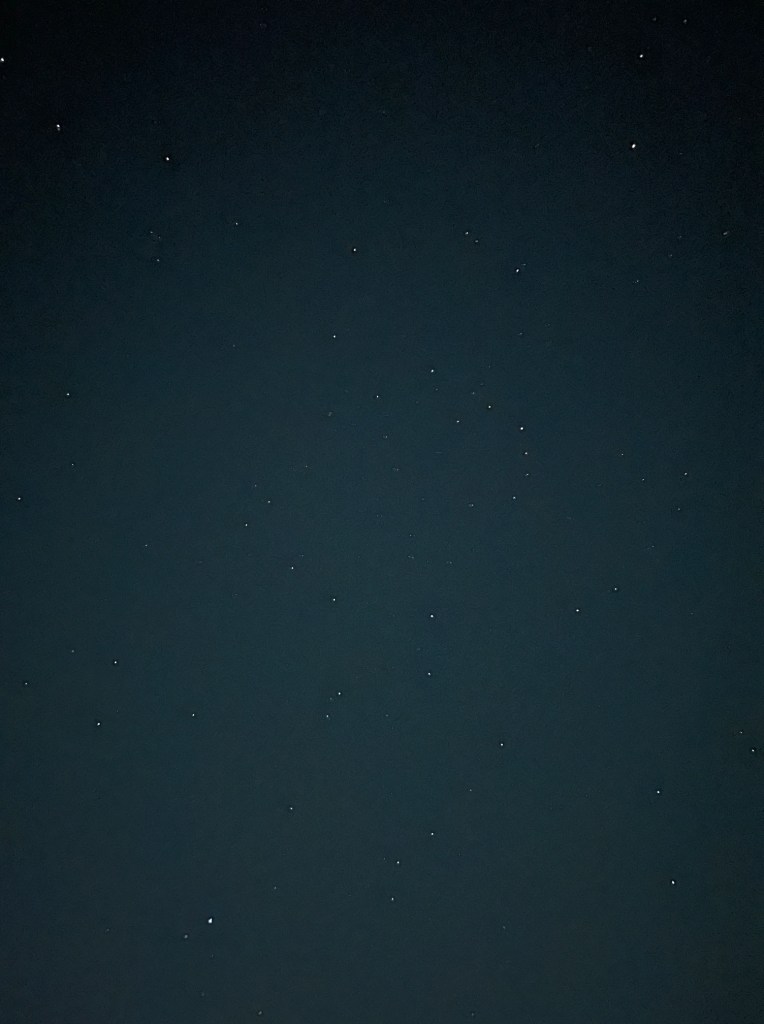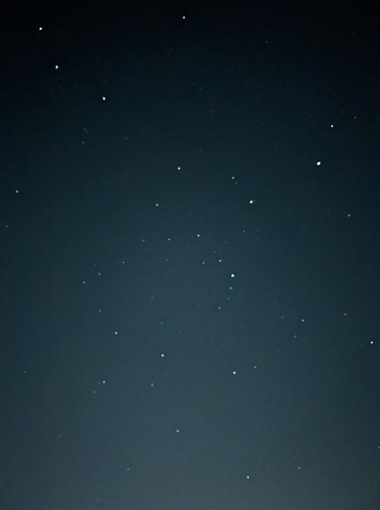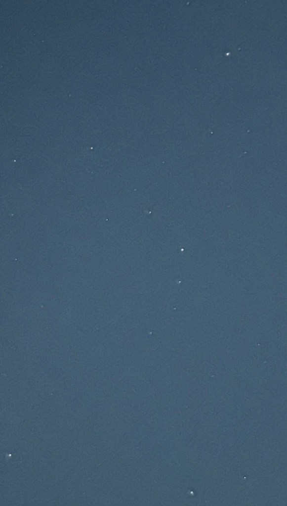 February 13th 2026 @ 4:48AM: Two cellphone photos as following. I woke up late. Corona Borealis is really high in the sky at this time…but in excellent position and above the light dome of Shelby.
