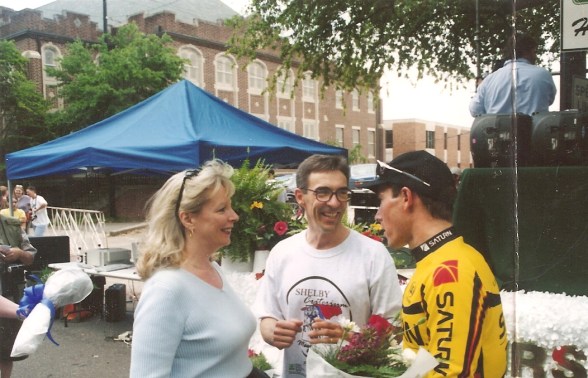 The above picture is Pro Elite Cyclist, Eric Wohlberg who was riding for Saturn/Timex at the time, my wife, Debbie and myself. Wohlberg finished second during the year pictured. His career spanned at least 20 years, and here are a only a few of his many accomplishments. He was a three time Olympian, winner of the Tour of Gila (a stage race held in New Mexico) and eight time Canadian National Time Trial Champion.