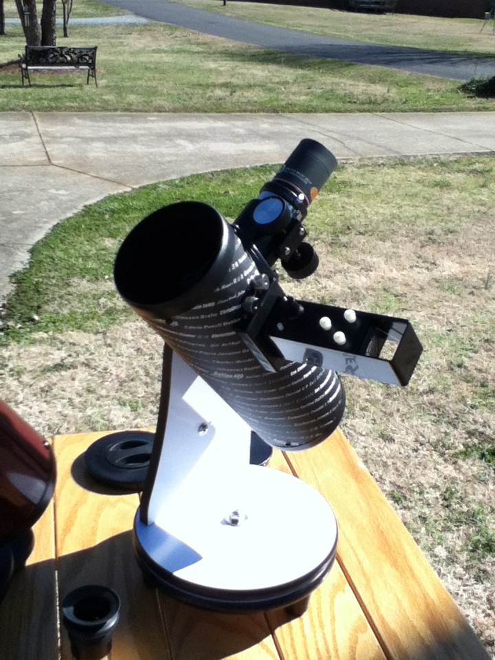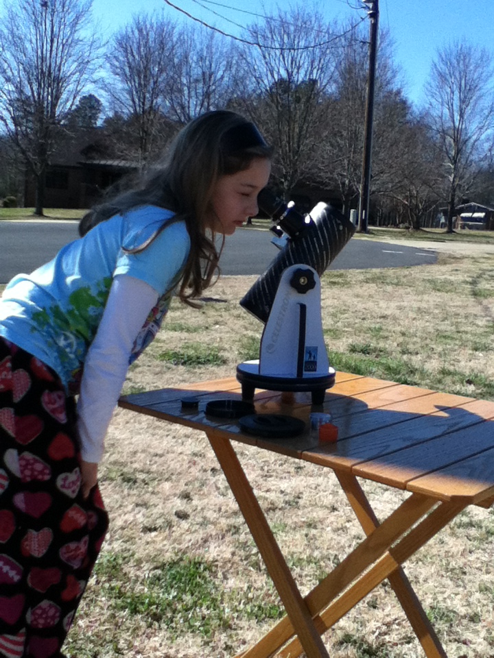 It also occurred to me that this would be a great time to see how easy it would be for an eleven year old to use two very popular beginner telescopes. A 76mm Celestron firstScope and a 100mm Orion SkyScanner.