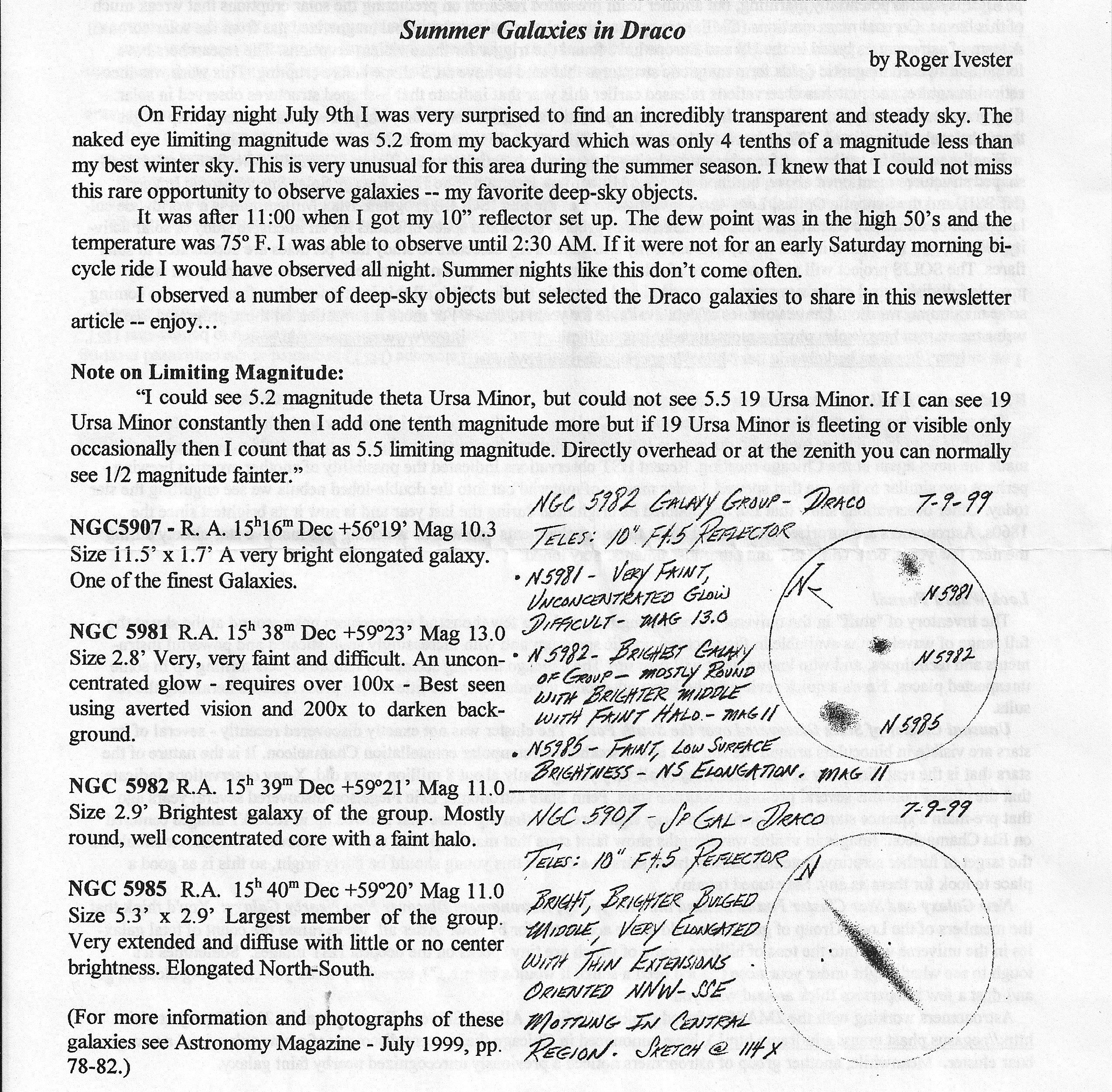 An early sketch and notes for the Cleveland County Astronomical Society Newsletter:  July 1999