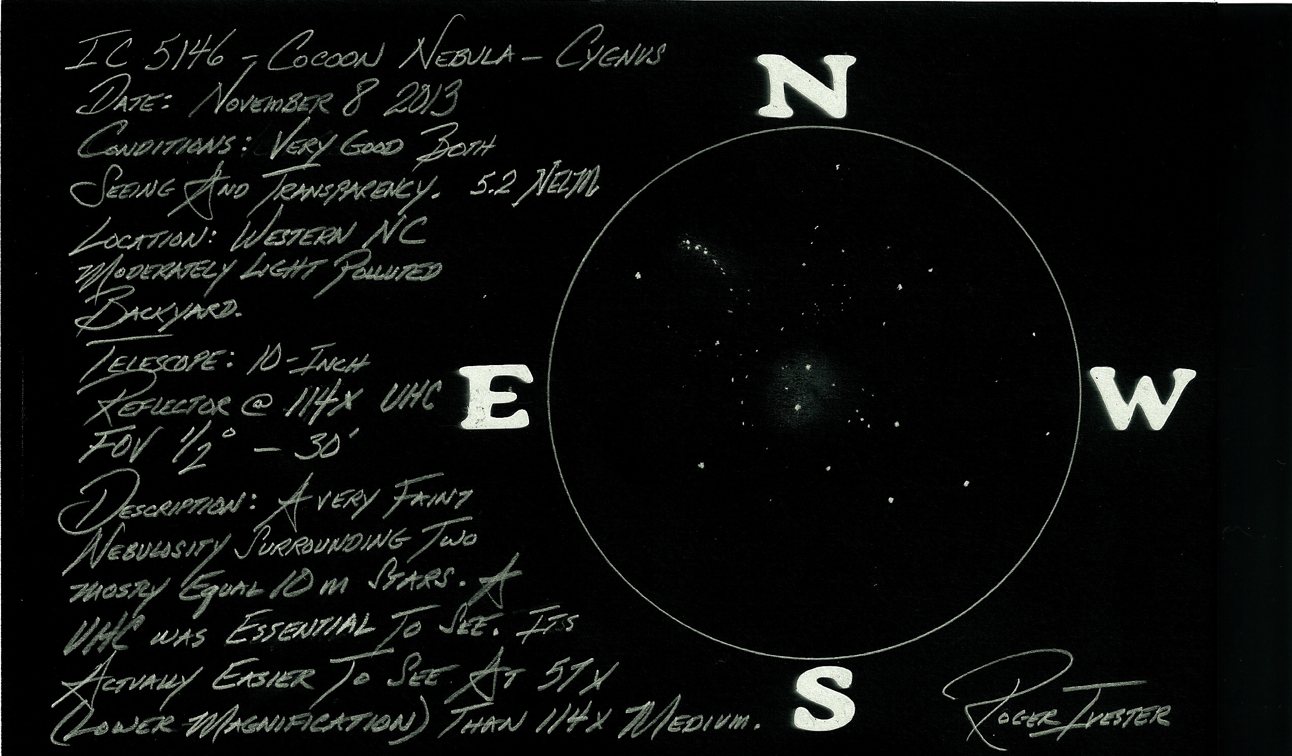 The first being my most recent sketch of the galaxy pair, which was made in April 2014, and the second is my original from April 1993. It was on this night that I questioned if I was actually seeing another galaxy, ESE of NGC 3893.
