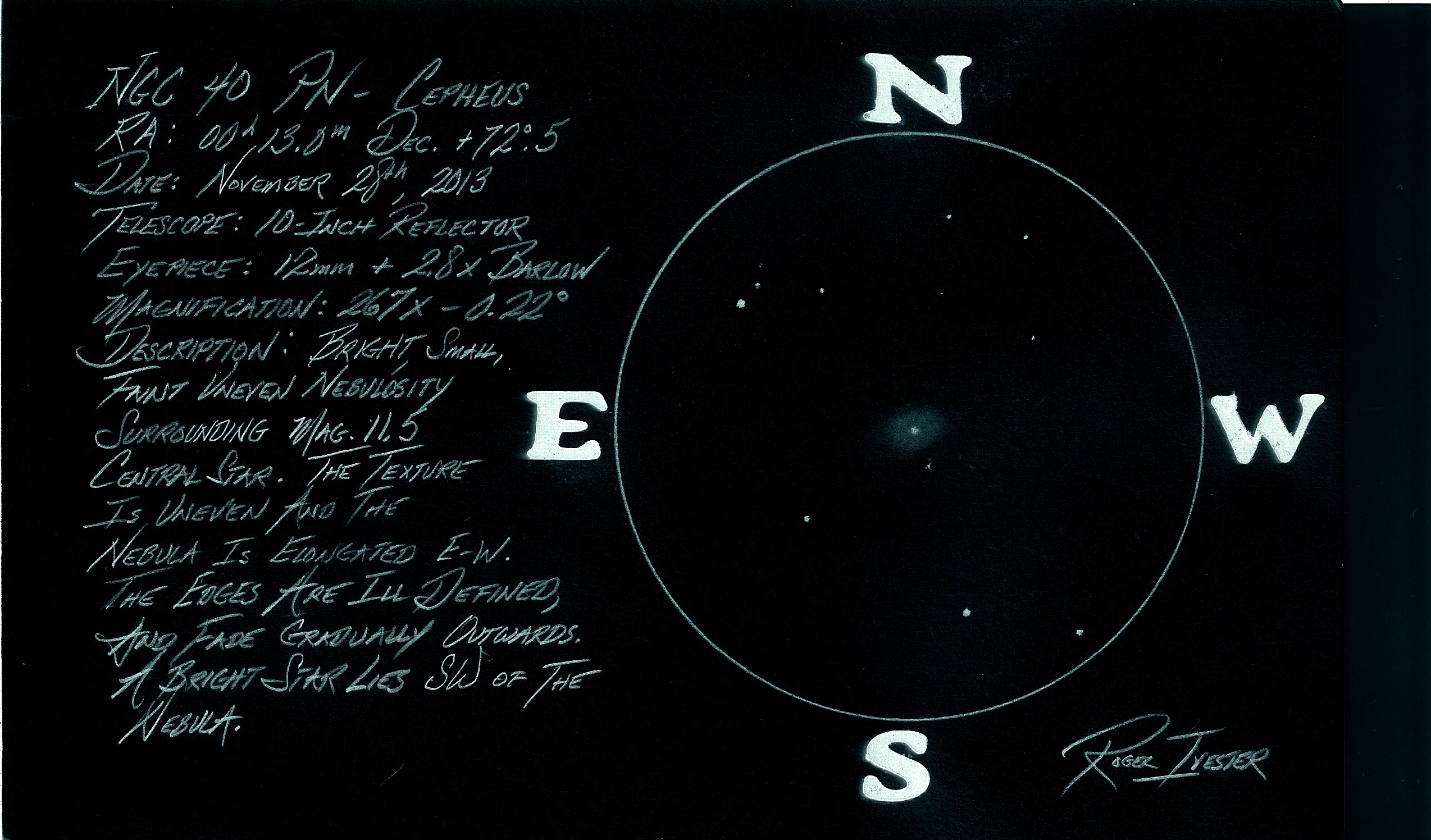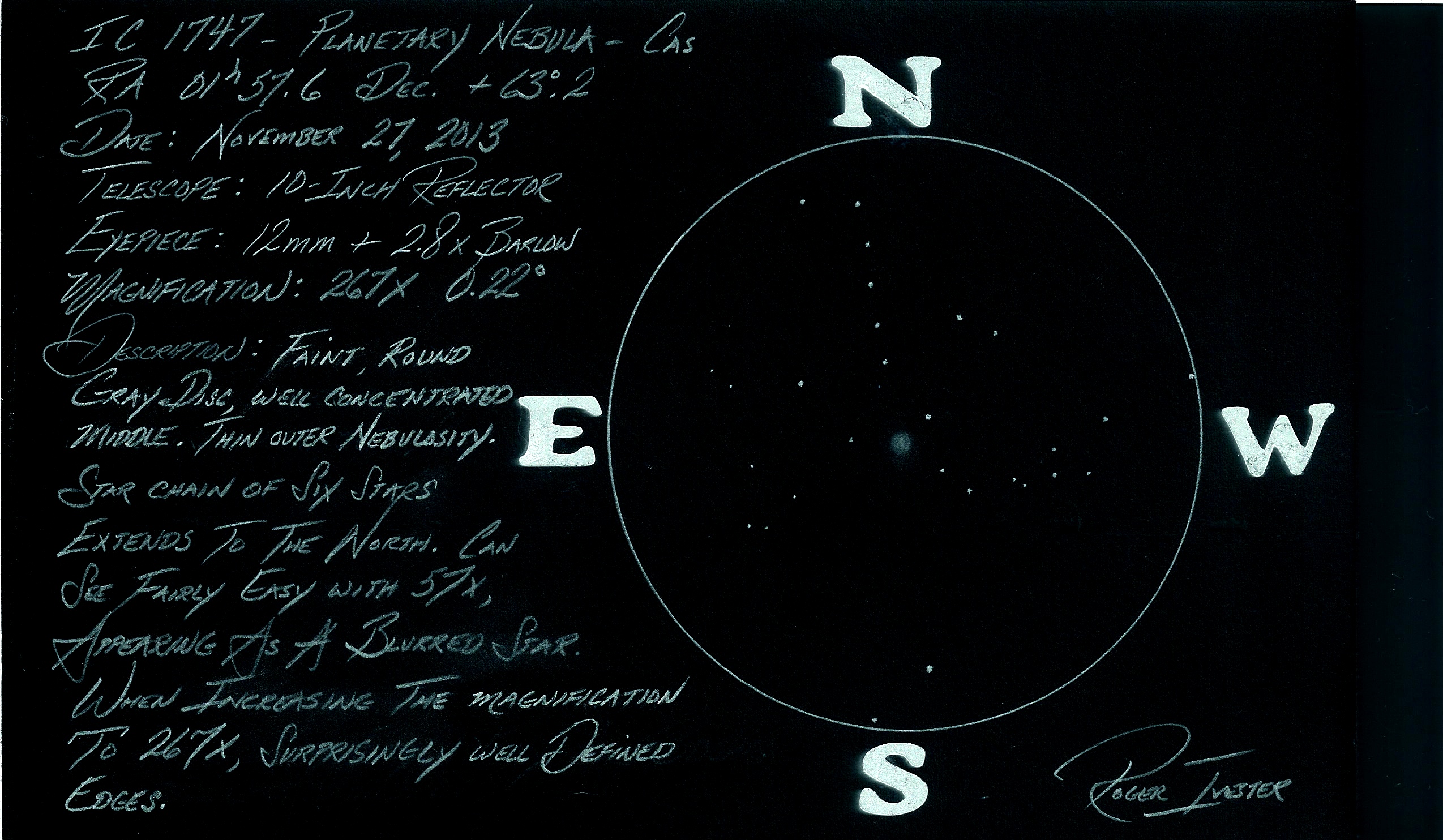 February 1993: 10-inch f/4.5 reflector (using 4-inch off-axis stop-down mask) @ 254x – Seeing fair to good. Could see the “E” star, but not easy.