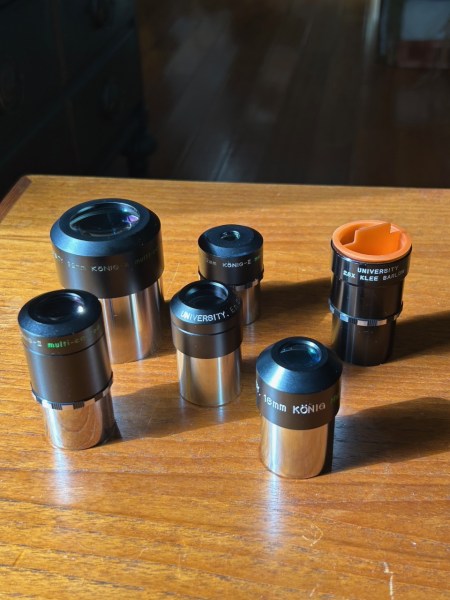 I purchased all of the original UO Konig’s over 30 years ago: A 12mm, 16mm, 24mm in a 1.25-inch format, and a 32mm 2-inch…also a 20mm UO Erfle, and a 2.8x three-element apochromatic Barlow. I have, or have had many other eyepieces over the years, including Televue, Celestron, Meade and others. But I still use my Konig’s quite often, even to this day. As a visual observer, I love eyepieces. However, my last eyepiece purchase was over ten years ago…an 11mm Explore Scientific 82º AF bought in-person, from the Park’s Optical store in Las Vegas.