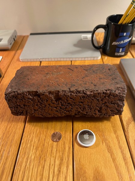 A piece of wood, propelled by the tornado, penetrated a mortar joint at Kistler’s Church about 1/2-inch, as my car key illustrates. (see photo below)