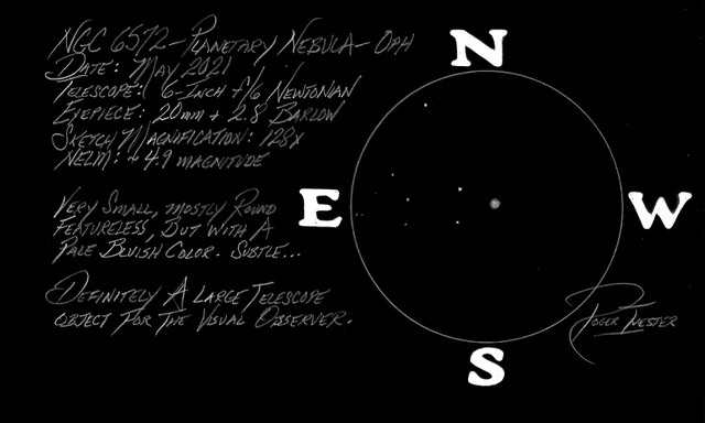 NGC 6572, Planetary Nebula in Ophiuchus: July 2021 Observer’s Challenge Report #150