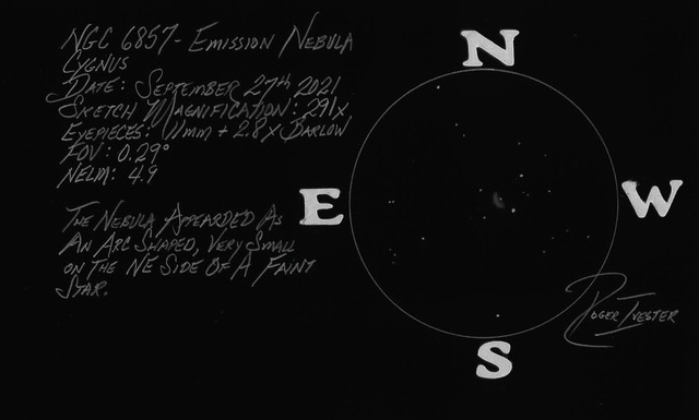 NGC 6857 is the brightest part of the larger, star-forming emission region Sharpless 2-100, which is a much more difficult visual target than NGC 6857.