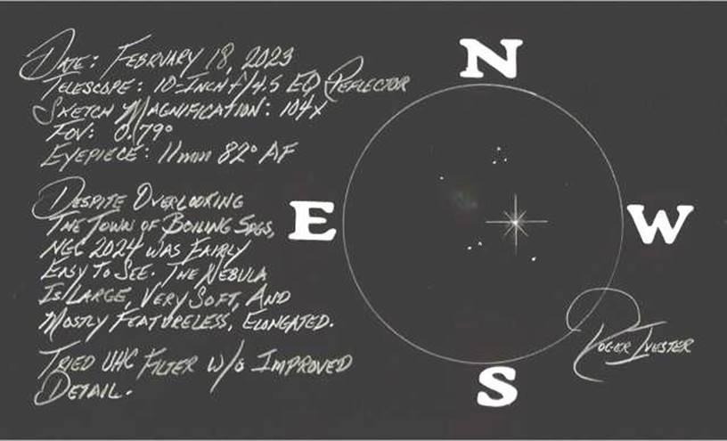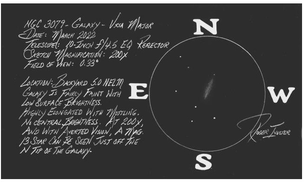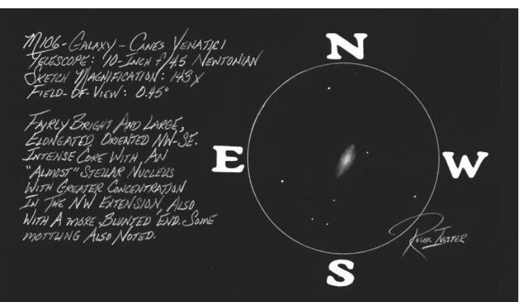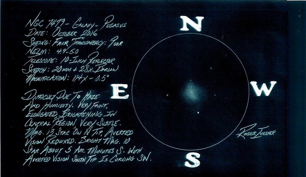 I started with a magnification of 83x, but to no avail, and increased to 232x…all the while keeping my eye perfectly still. I used my astro-chair, as it’s very important to be seated for an attempt such as this, or making any deep-sky sketch.