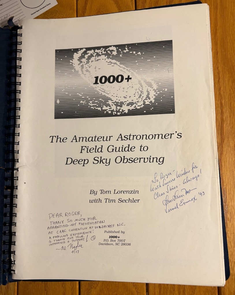 Photo as following: Al signing my “1000+ The Amateur Astronomer’s Field Guide to Deep Sky Observing” by Tom Lorenzin at the April 2017 Southern Star Astronomy Convention in Little Switzerland, North Carolina: