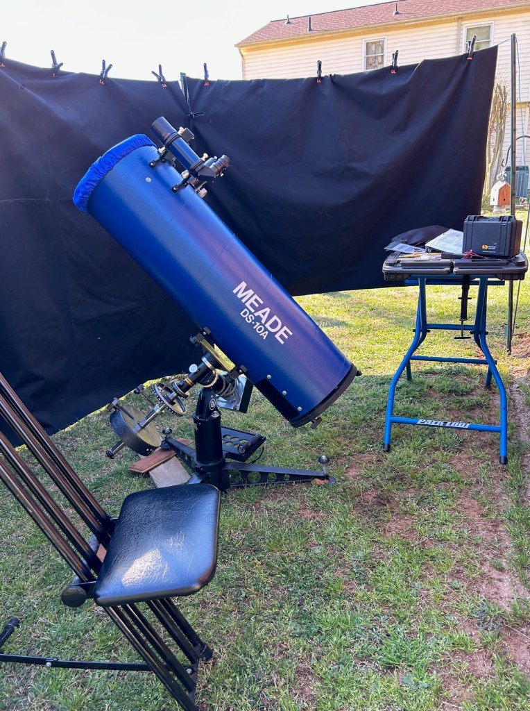 Almost thirty years ago, I fabricated a humble fabric light-block system (as pictured below) which has helped me many times over the years to see difficult and faint galaxies. It’s easy to set up and take down.