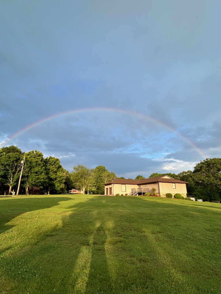 May 24th 2024 at 7:30 AM: While Debbie and Sophie were still sleeping…I walked outside to see this amazing early morning rainbow in the west. This was my first time to see a rainbow at this time of the day, as they mostly occur in the afternoon and in the east. However, maybe more frequent than I’d think, as I’m just not looking at that time of the day. And we all know that a rainbow is always opposite the sun: When a rainbow is seen during the afternoon…the sun is in the west.