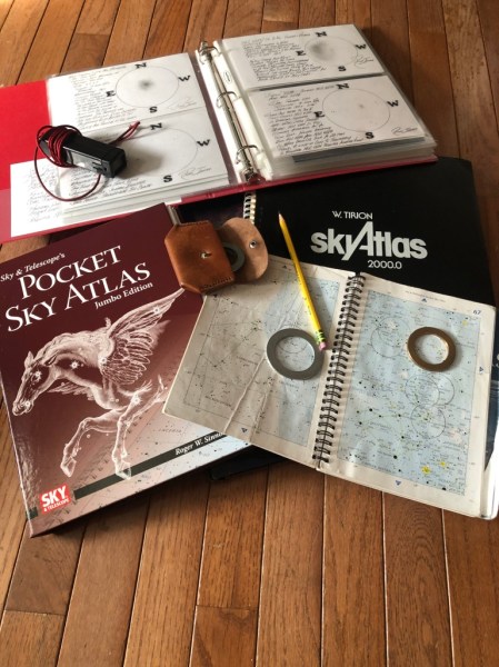 I first draw a circle on my atlas before going out with the same degree field as my finder. I then attempt to point the magnified finder to match that of my star atlas, with the deep-sky object in the center of the circle.