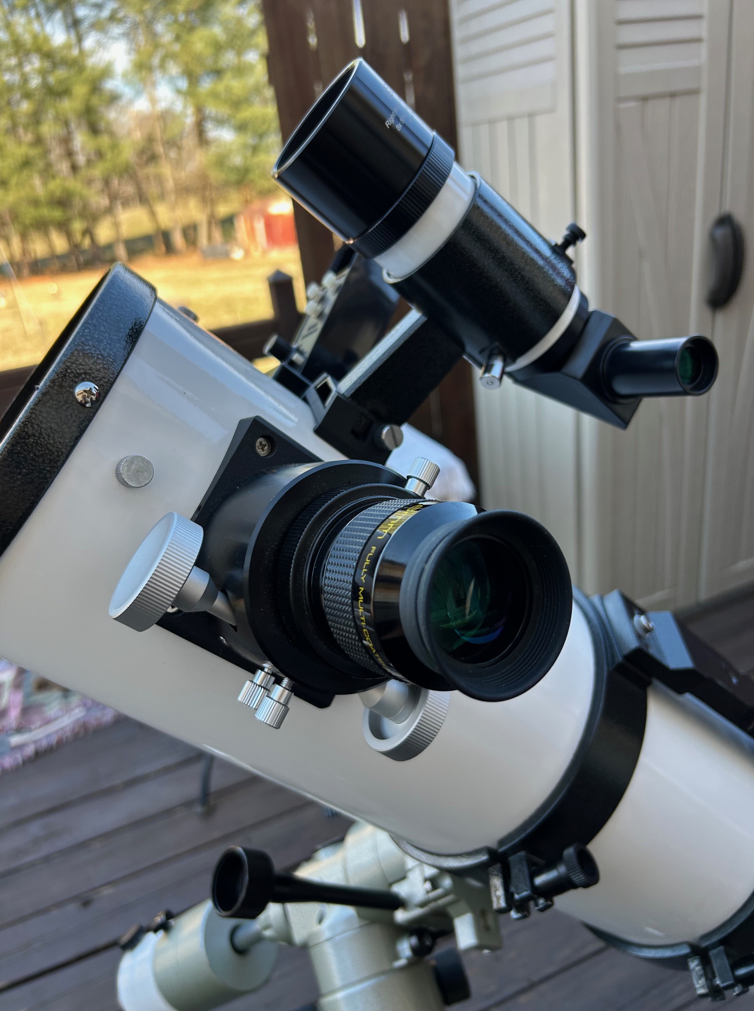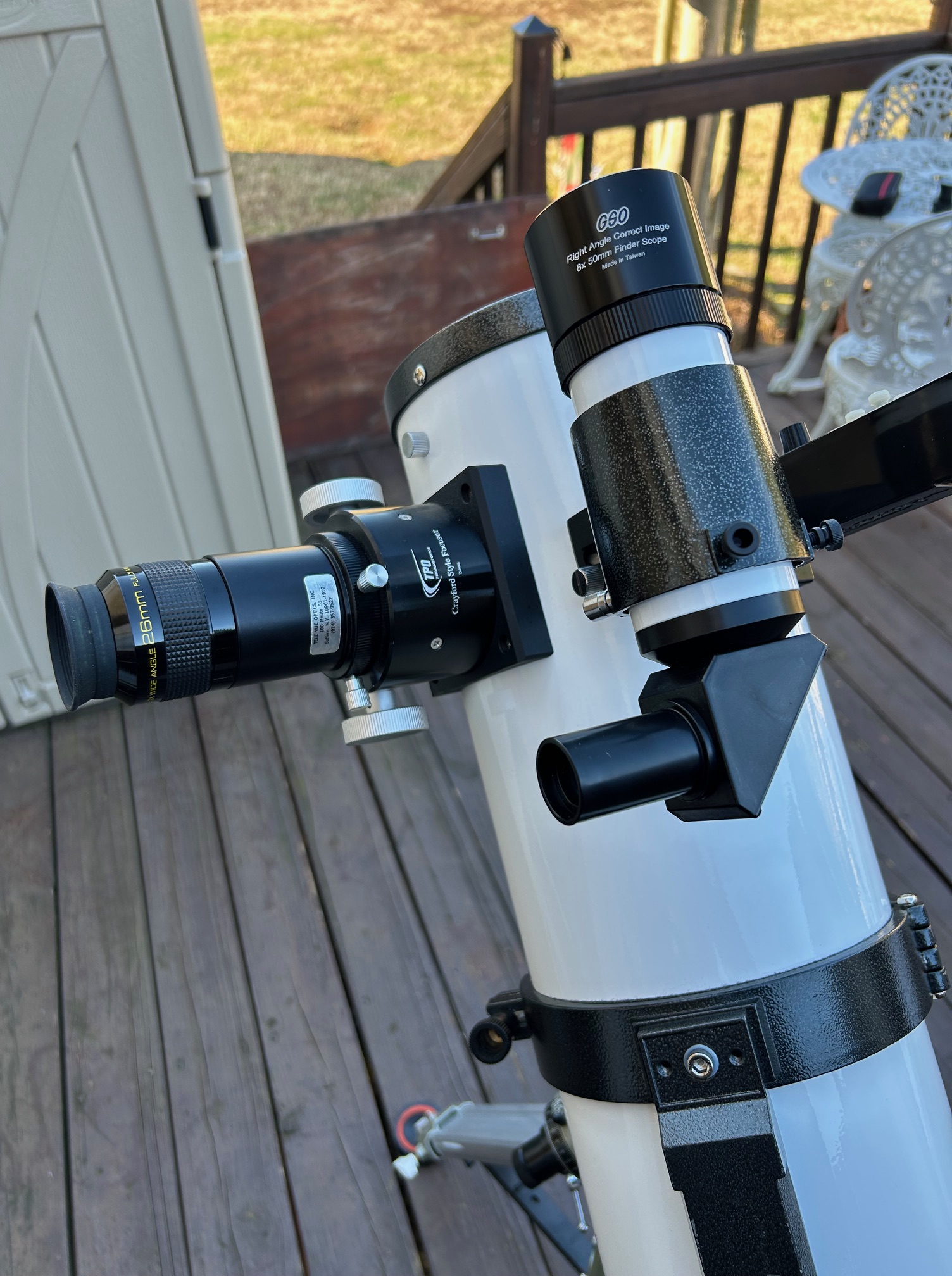 It has become almost impossible for me to now use a standard straight-through finder scope, due to the pain in my neck. Getting under a standard finder and in all types of contorted positions is just too uncomfortable. So, a 90º RACI (right angle correct image) finder is now essential.