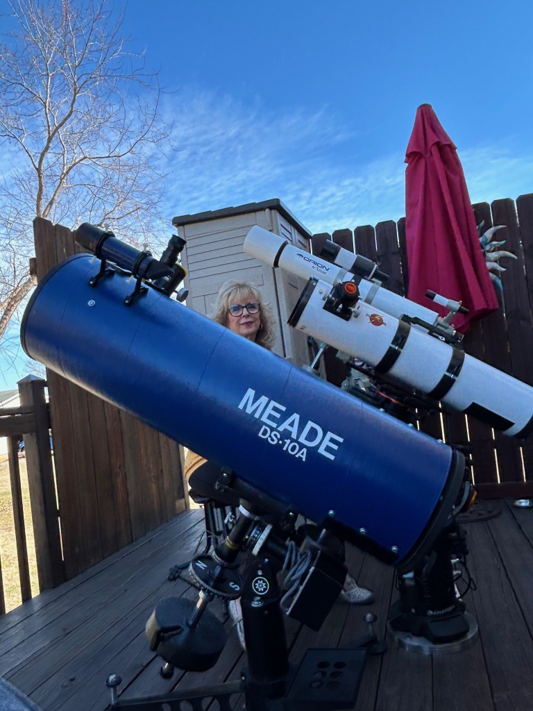 My 10-inch Newtonian just became impractical for setting up and bringing back inside on a regular basis. It was a large and heavy telescope requiring too much effort…especially after 34 years! Pictured below…