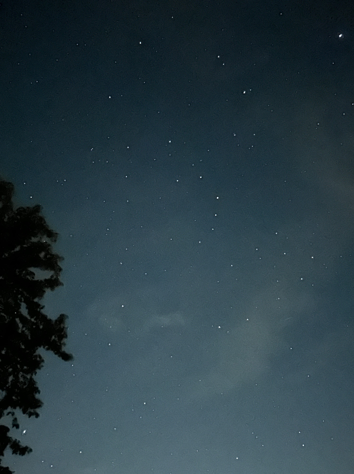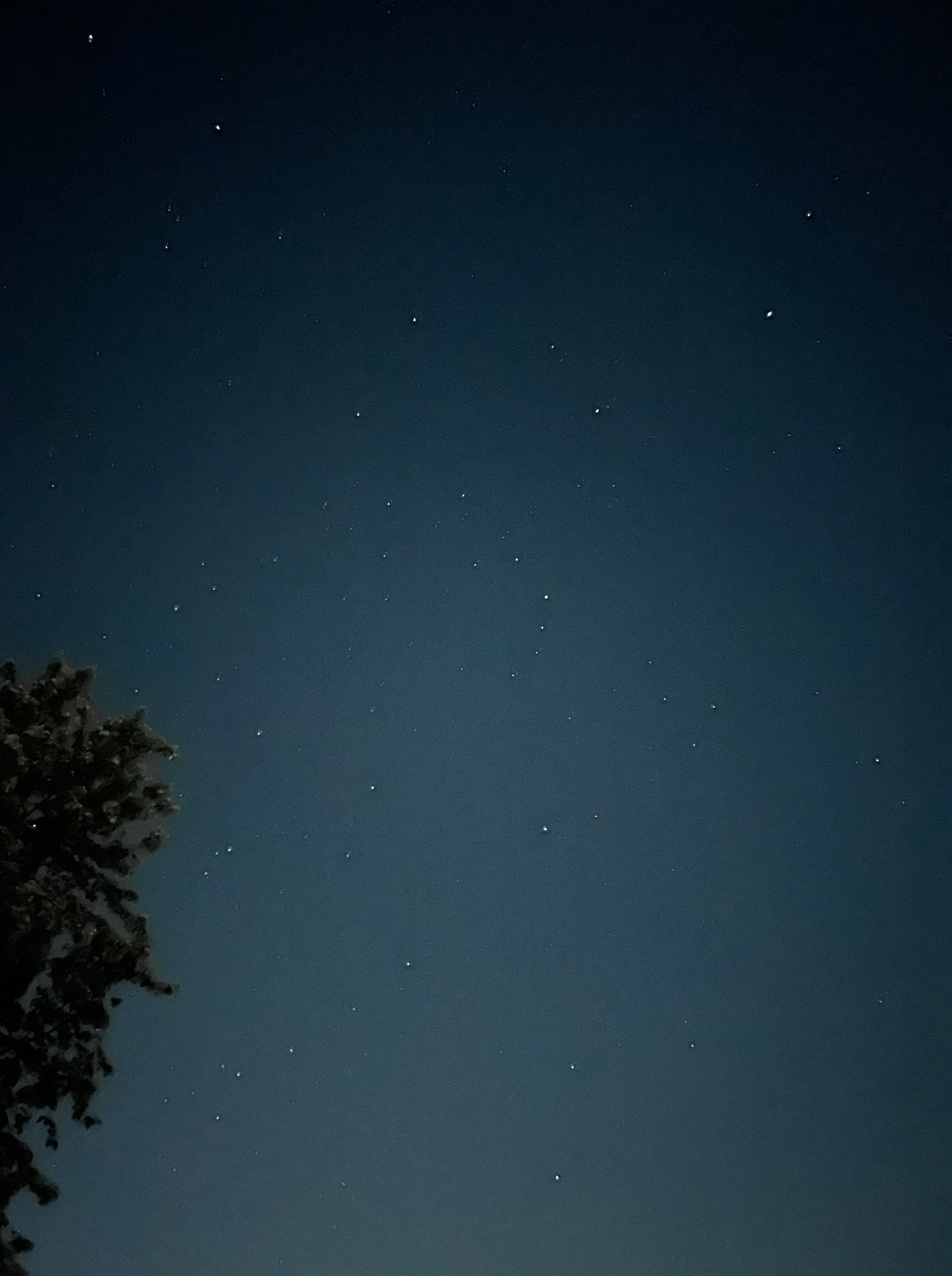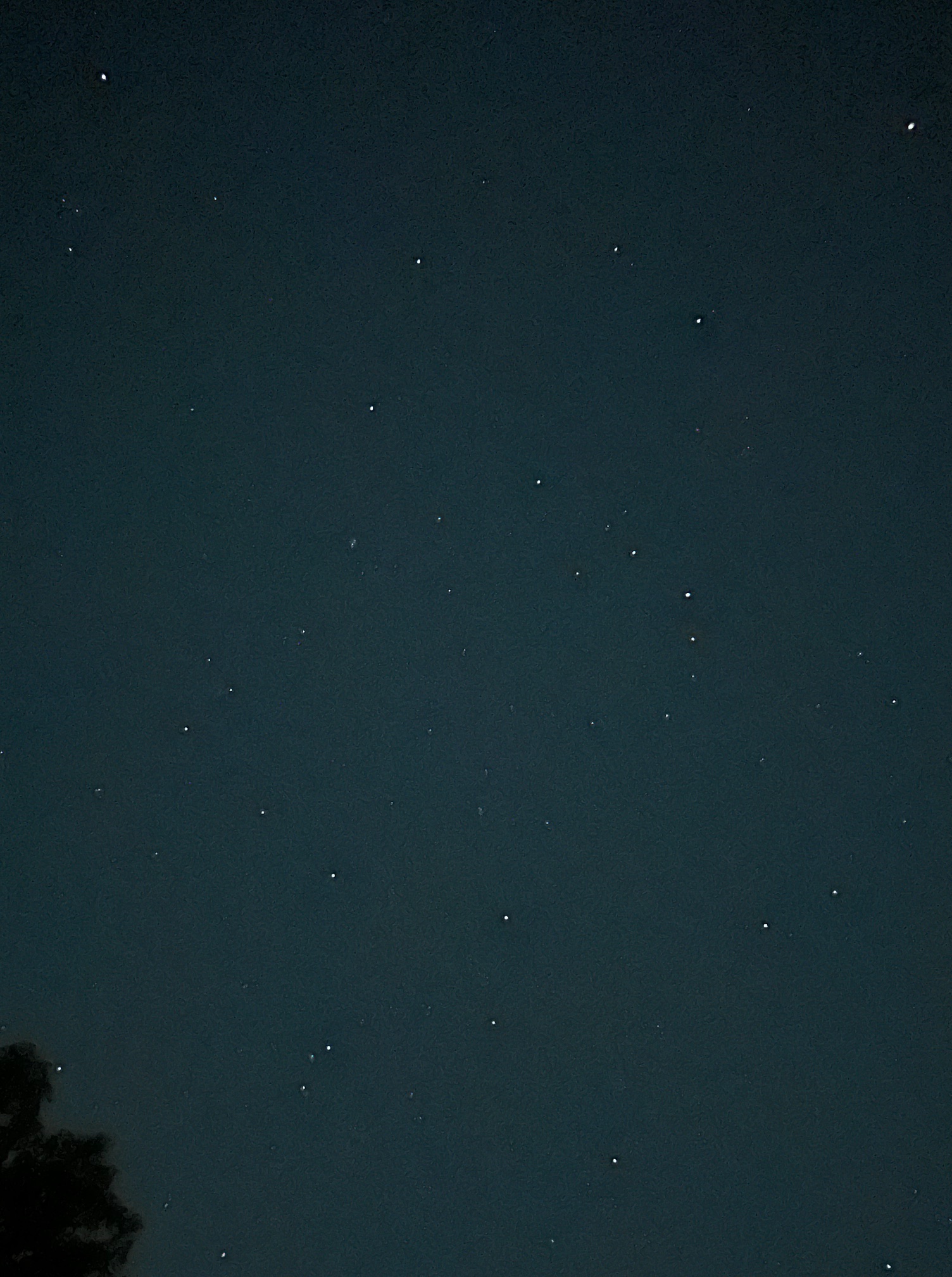 I took the following photo using an iPhone 14 with a 3-second exposure on Wednesday May 7th at 10:00 PM with a moon illumination of 79%