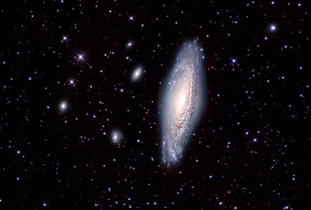 This galaxy was just out of the frame in the (Mario Motta’s image) but I used it as my star hop base, so I will go ahead and mention the observation. Easy to see at mag. 14.5 with a pretty high surface brightness. Its 1.2′ x .3′ nearly N-S elongation was obvious being brighter in the center and tapering off towards the ends of the arms. A couple of 15th mag stars bracket the galaxy.