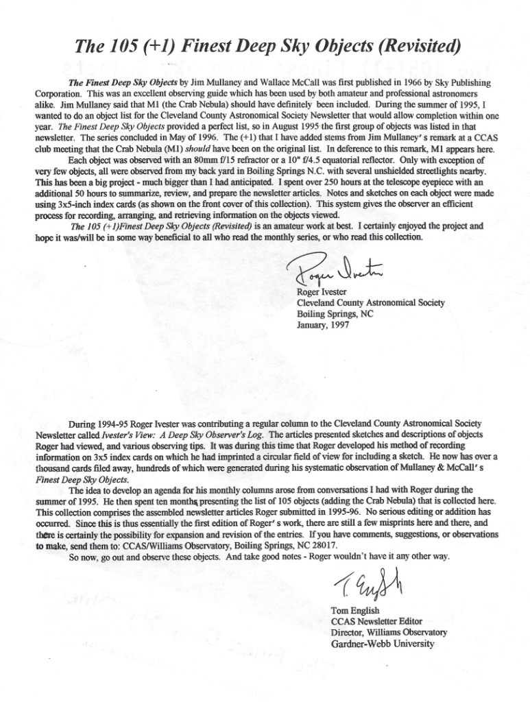 The publication was titled: “The 105 (+1) Finest Deep-Sky Objects: Revisited”